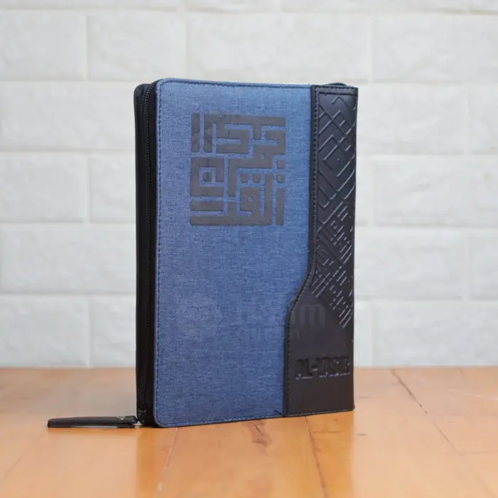 2. Resleting berbahan metal, sehingga lebih kokoh dan aman, serta memiliki gigitan resleting yang lebih kuat. Metal Zipper memberi kesan mahal dan eksklusif pada Al-Qur’an.