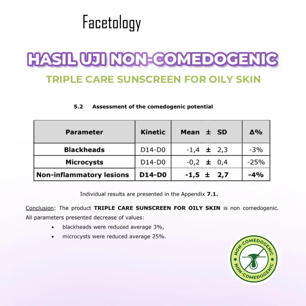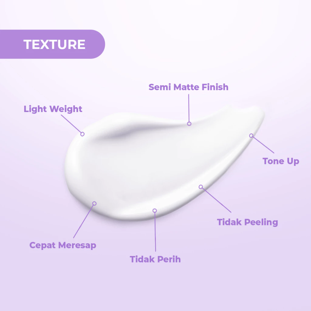Sunscreen dengan kandungan powder oil absorbent, mampu mengontrol minyak tanpa menyumbat pori pori. Formulanya yang ringan cepat menyerap dengan hasil akhir semi-matte yang nyaman di kulit. Selain itu, bahan seperti mugwort, Centella Asiatica dan Encapsulated Salicylic Acid membantu menenangkan kulit dan mengatasi jerawat dengan aman untuk pengguna sehari hari.