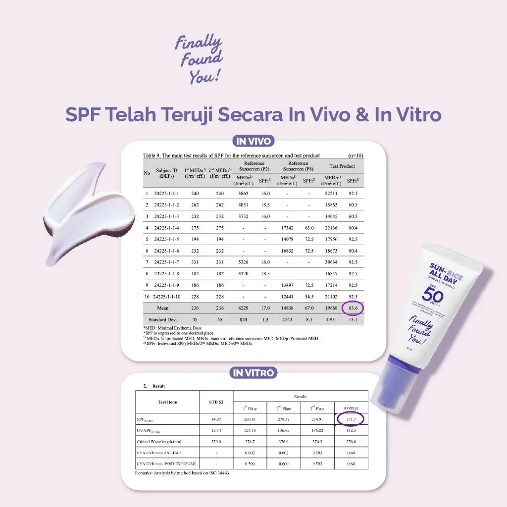 telah teruji In vivo dan in vitro untuk claim SPF nya real, dan sudah teruji juga non-comedogenic; tidak menyumbat pori-pori dan aman digunakan untuk semua jenis kulit termasuk kulit sensitif dan berjerawat.
