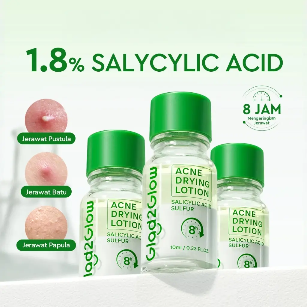 Acne Drying Lotion dengan Quad-Action Acne Defense dan Calming Complex, menggabungkan bahan aktif dengan bahan alami. Mengeringkan jerawat dengan cepat serta menenangkan kulit. Terdiri dari dua bagian terpisah: bagian air mengandung Salicylic Acid dan Niacinamide, serta bagian bubuk mengandung Colloidal Sulfur dan Zinc Oxide, diformulasikan untuk perawatan titik jerawat, mulai dari nodule, pustule, & cysts.