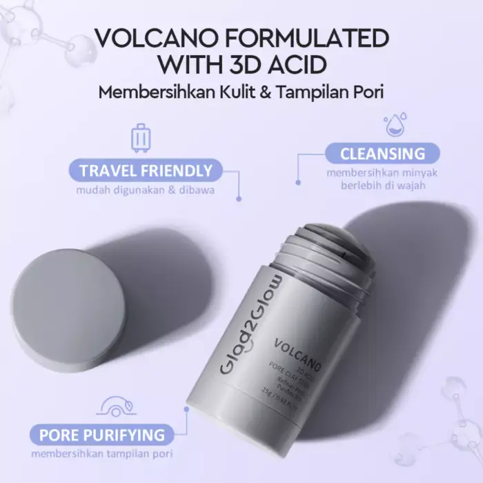 Alaska Volcano Pore Detox Clay Stick mengandung partikel halus yang secara alami dapat mengeksfoliasi kulit wajah menjadi lebih bersih dan bebas komedo ataupun tersumbat. Dilengkapi dengan Glycolic Acid dan Probiotic Complex untuk menjaga skin barrier serta menyegarkan kulit. Dengan tekstur yang lembut dan mudah diaplikasikan, tanpa menyebabkan sensasi kulit tertarik atau kencang, memiliki kekuatan pembersihan mendalam untuk membersihkan wajah secara maksimal. Coverage yang baik, dengan 1 usapan dapat menutup satu area pada wajah. Hasil penggunaan pori-pori tampak lebih mengecil, kulit bersih dan halus.