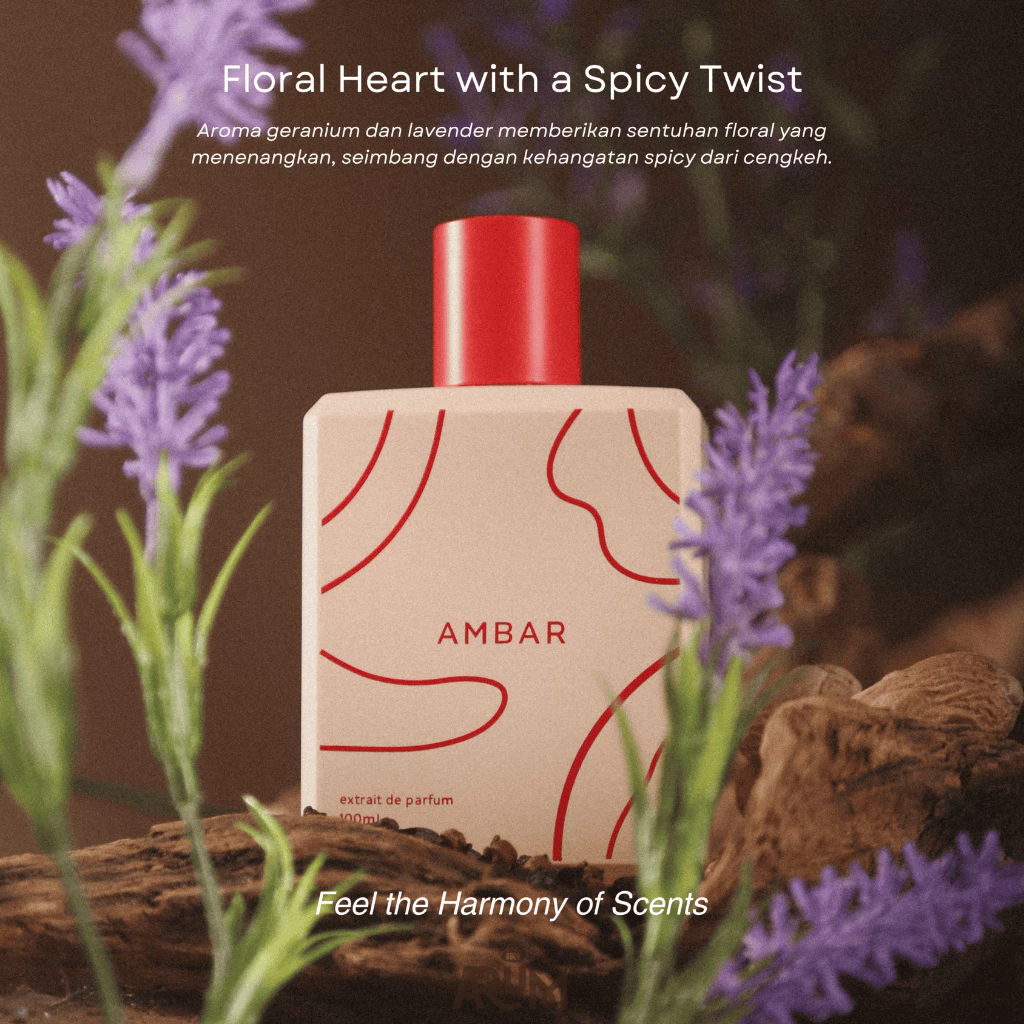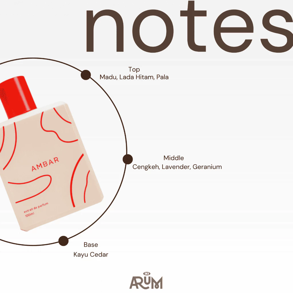 Top notes di AMBAR ada sedikit manis dari madu yang bikin wangi ambar terkesan elegan, di campur dengan wangi lada hitam, pala yang bikin wangi ambar jadi spicy dan warm