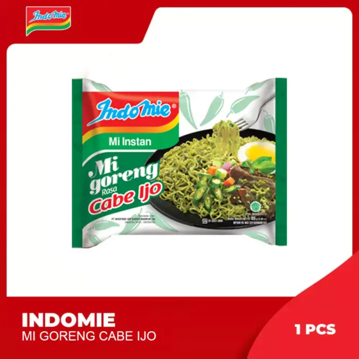 Indomie Goreng Rasa Cabe Ijo, Salah satu produk mie instan goreng yang paling legendaris. Disukai oleh semua lapisan usia dan kalangan. Rasa nikmat dan gurih. Disajikan dengan kecap manis, bawang goreng, dan saus cabe. Cocok dimakan di mana saja dan kapan saja