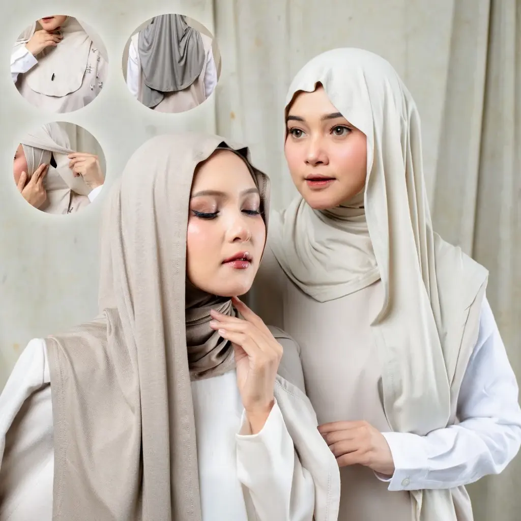 1. Inner menutup leher : Pashmina biasanya kendala di bagian leher yang terbuka, hijab ini solusinya karena dilengkapi inner yang menutup leher.