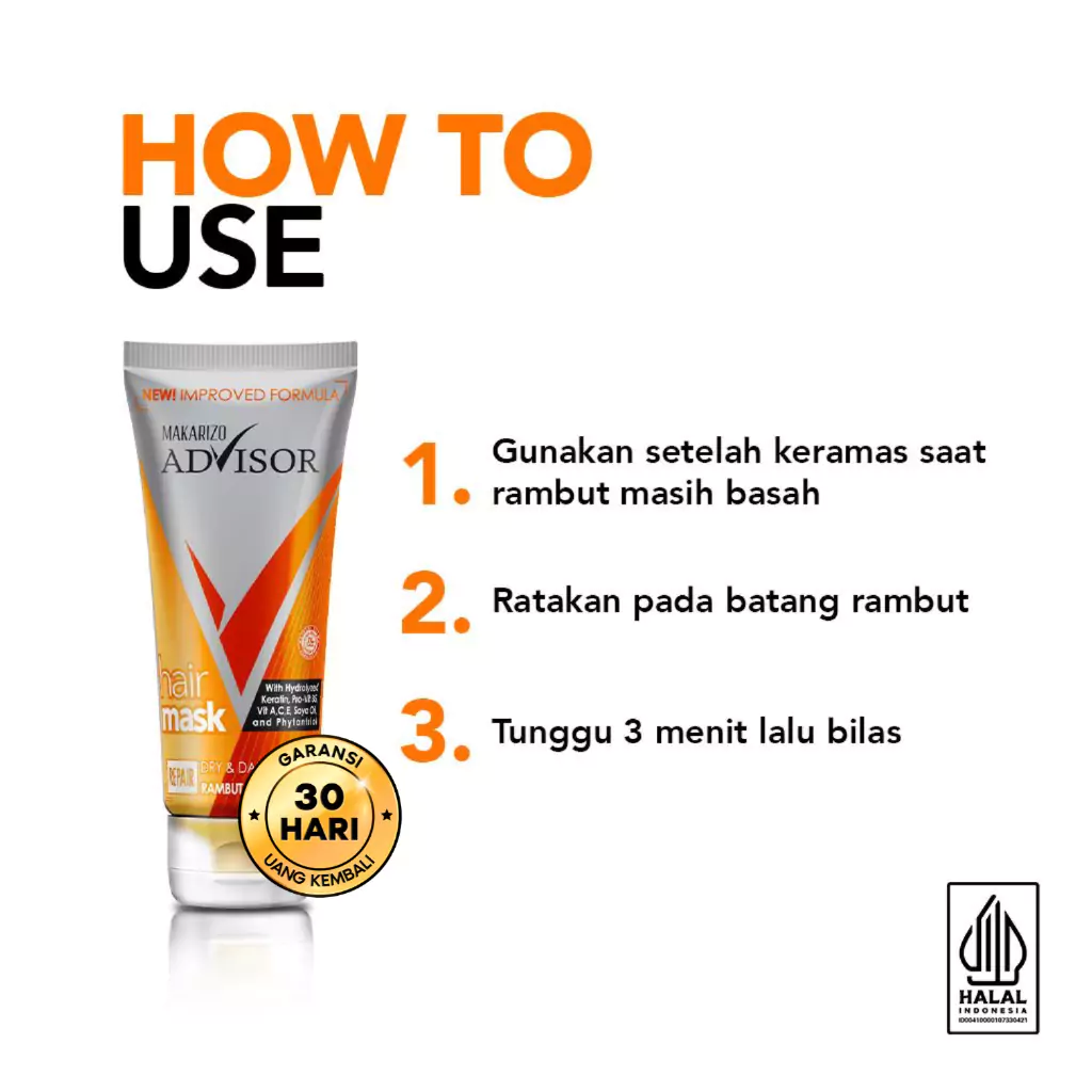 • Makarizo Advisor menghadirkan masker rambut yang membantu menutrisi dan mengembalikan kesehatan rambut rusak.