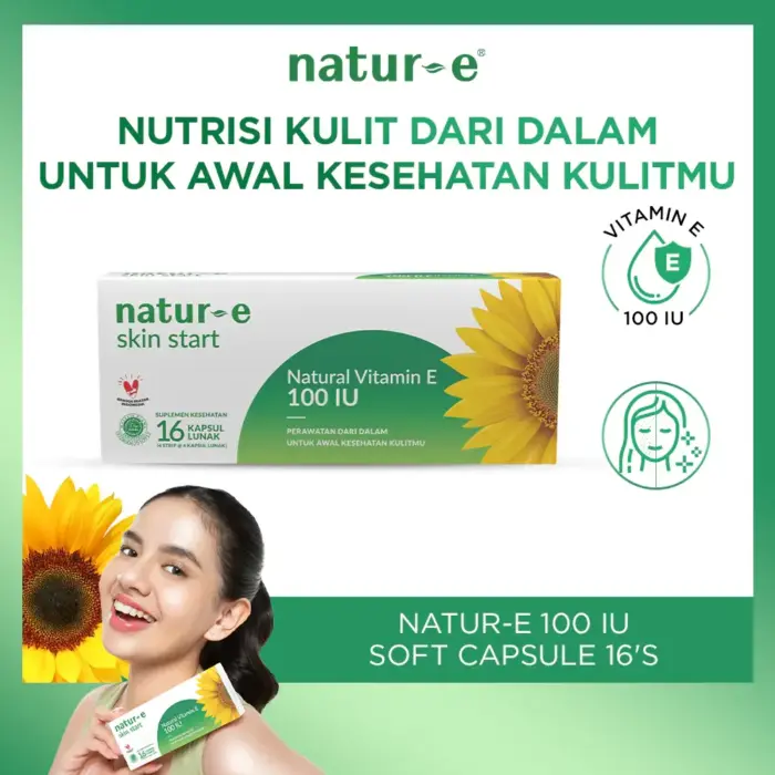 Natur-e 100 IU Soft capsule 16’s. Untuk menjaga kulit tetap sehat perlu dilakukan perawatan dari dalam dan luar sejak dini. Natur-E Skin Start Natural Vitamin E 100 IU Soft Capsule, membantu menjaga kesehatan kulit dari dalam untuk awal kesehatan kulitmu, mengandung Natural Vitamin E dengan kadar 100 IU yang berasal dari bahan alam.
