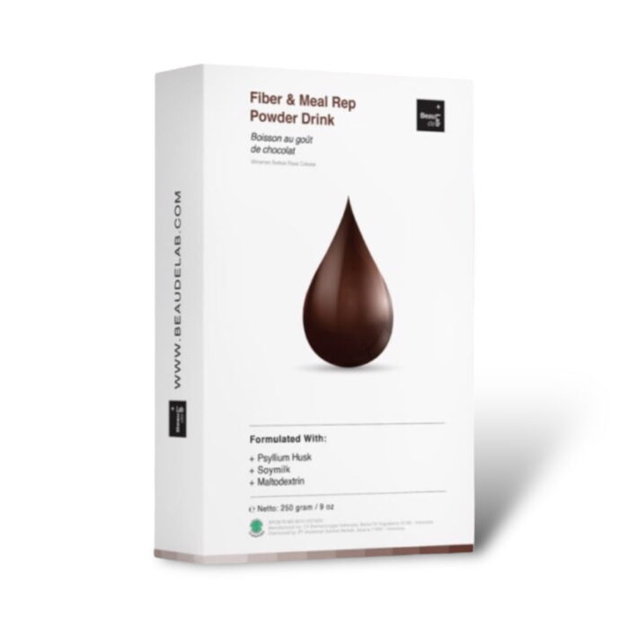 Beaudelab Fiber Drink, Fiber rasa cokelat yang enak untuk di konsumsi di pangi hari sebagai pengganti sarapan. Di lengkapi dengan soymilk yang membantu untuk kenyang lebih lama, sehingga dapat di konsumsi sebagai meal replacement.