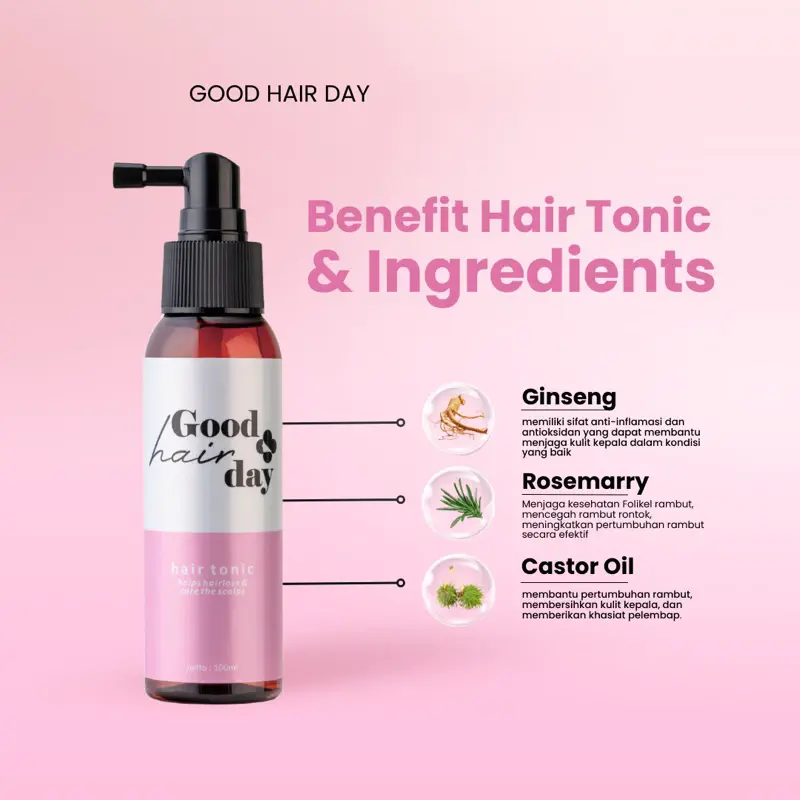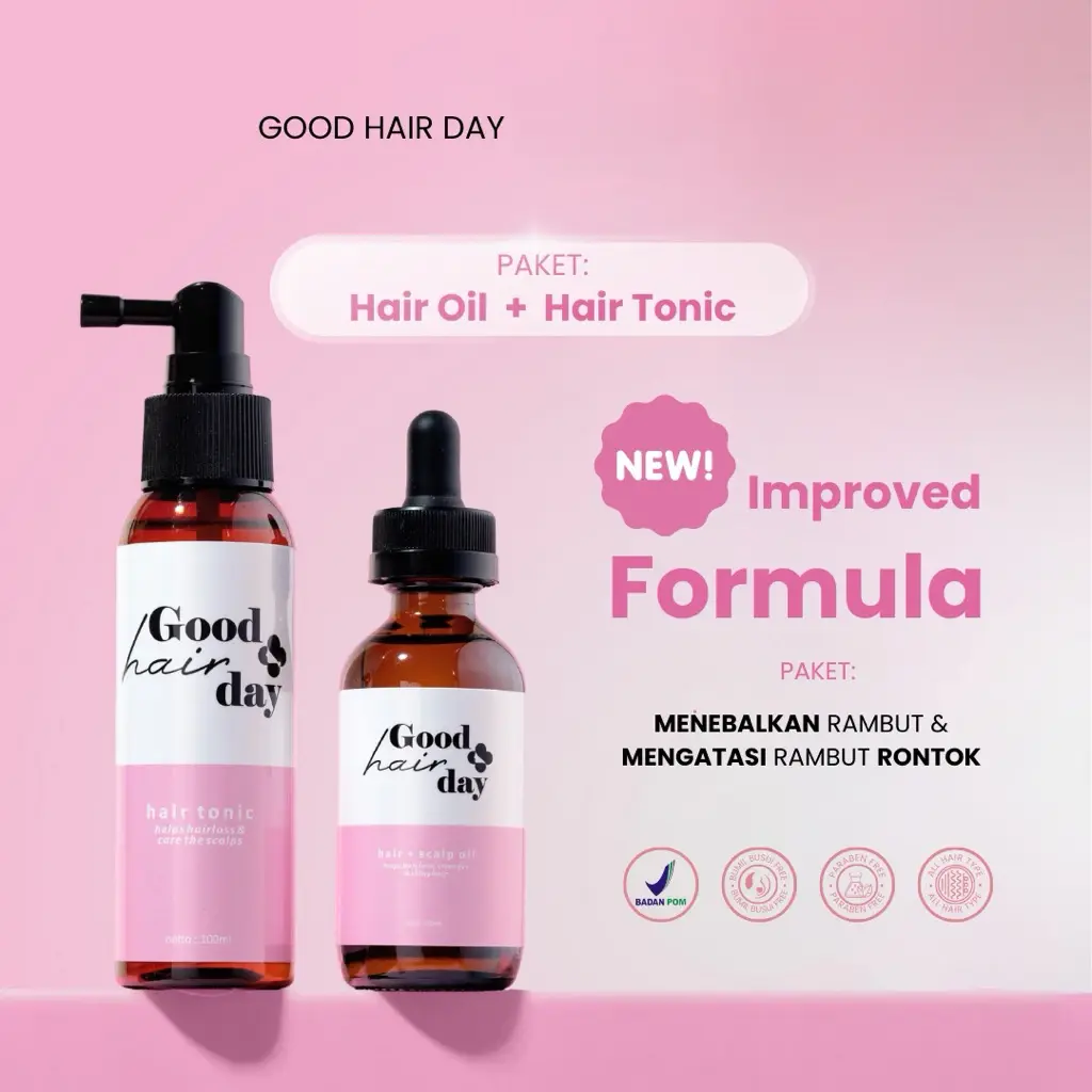 Hairoil & Hairtonic goodhairday NEW FORMULA & NEW PACKAGING. Paket menebalkan rambut & mengurangi rambut rontok.