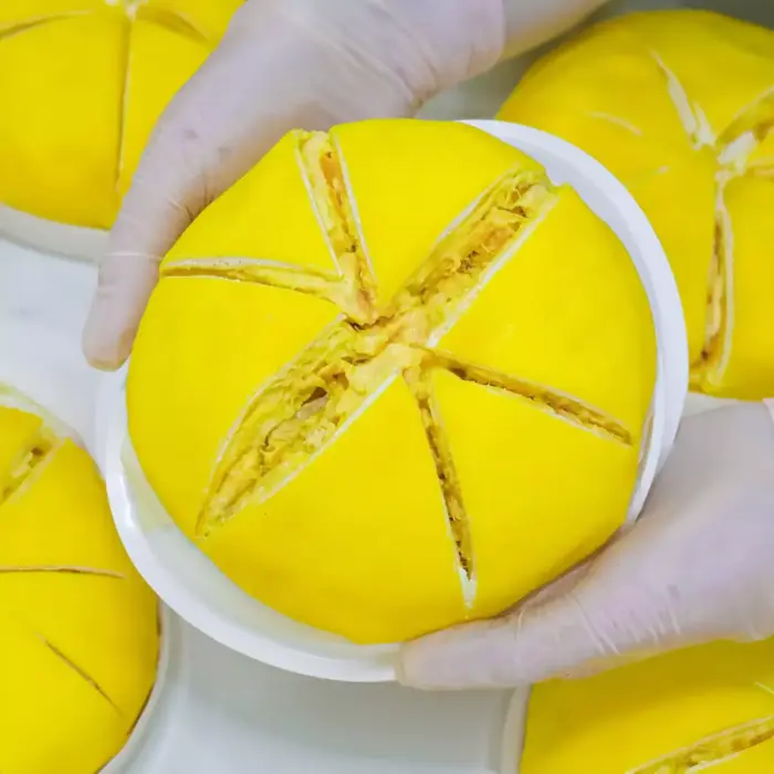Pancake Durian dengan tekstur yang lembut dengan isi buah Durian asli! Nikmat dalam setiap gigitannya.