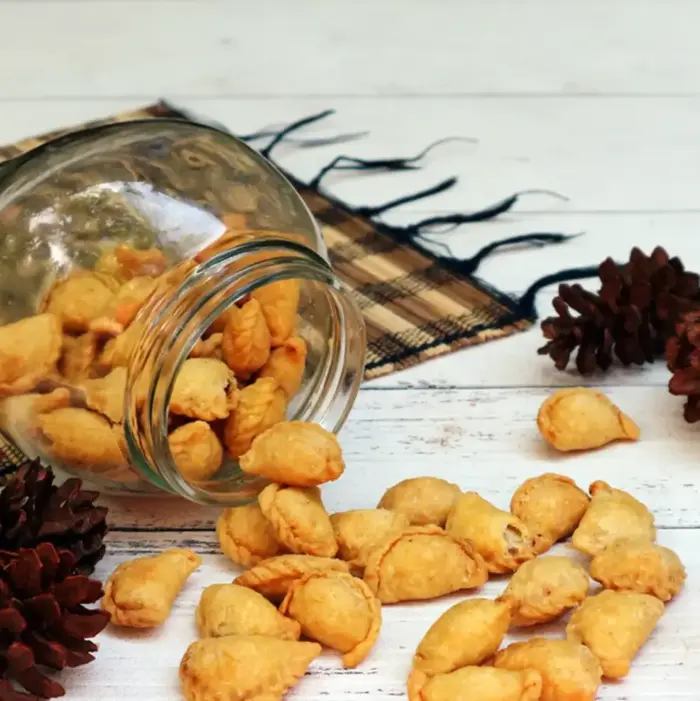 Nikmati kelezatan camilan khas dengan rasa istimewa, Pastel Abon! Dibuat dari adonan kulit pastel yang renyah dan tipis, dipadukan dengan isian abon ayam pilihan yang manis-gurih. Proses pembuatan yang higienis dan bahan berkualitas menjadikan setiap gigitan pastel abon ini penuh kenikmatan.