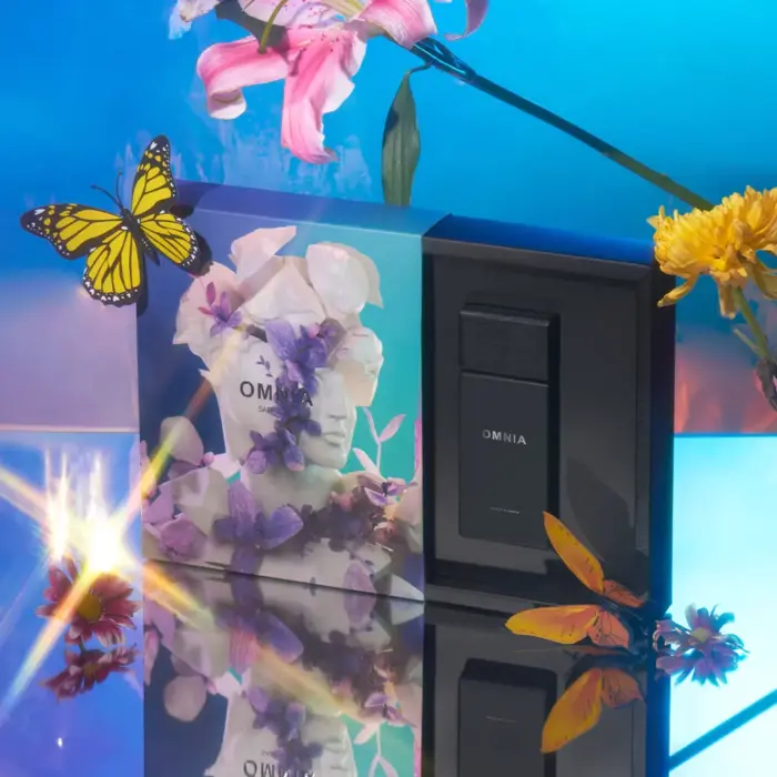 OMNIA carries dew-kissed petals like a morning breeze, leaving a trail of sun-lit whispers in its wake. An iris-sweet elixir that opens the door to an enchanted sanctuary, where time slows its stride and magic weaves its wonder.