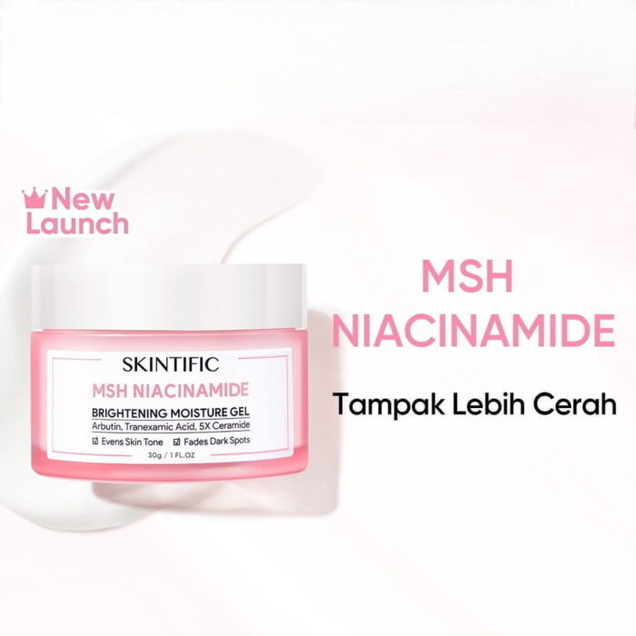 MSH Niacinamide Brightening Moisture Gel dengan tekstur seringan udara, Diformulasikan dengan Novel MSH Niacinamide ekslusif SKINTIFIC yang dikombinasikan dengan dua bahan pencerah yang ringan dan paling efektif yaitu Alpha Arbutin dan Tranexamic Acid, MSH Niacinamide terbukti secara klinis 10 kali lebih efektif dibandingkan niacinamide biasa dalam mengurangi hiperpigmentasi, meredakan kemerahan dan memperbaiki elastisitas kulit. Diperkaya dengan Centella Asiatica dan 5X Ceramide, tidak menyebabkan iritasi serta memberikan efek menenangkan kulit sekaligus memperbaiki dan menjaga skin barrier.
