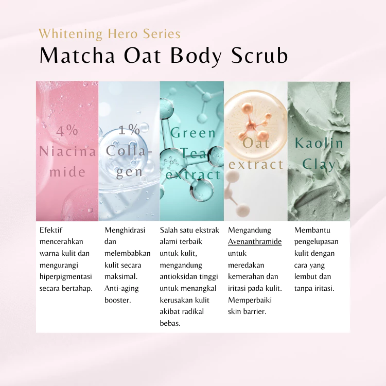 Untuk hasil terbaik gunakan Matcha Oat [Whitening Hero] Body Lotion setelahnya untuk melembabkan kulit dan ekstra brightening serum.