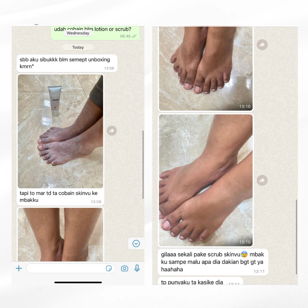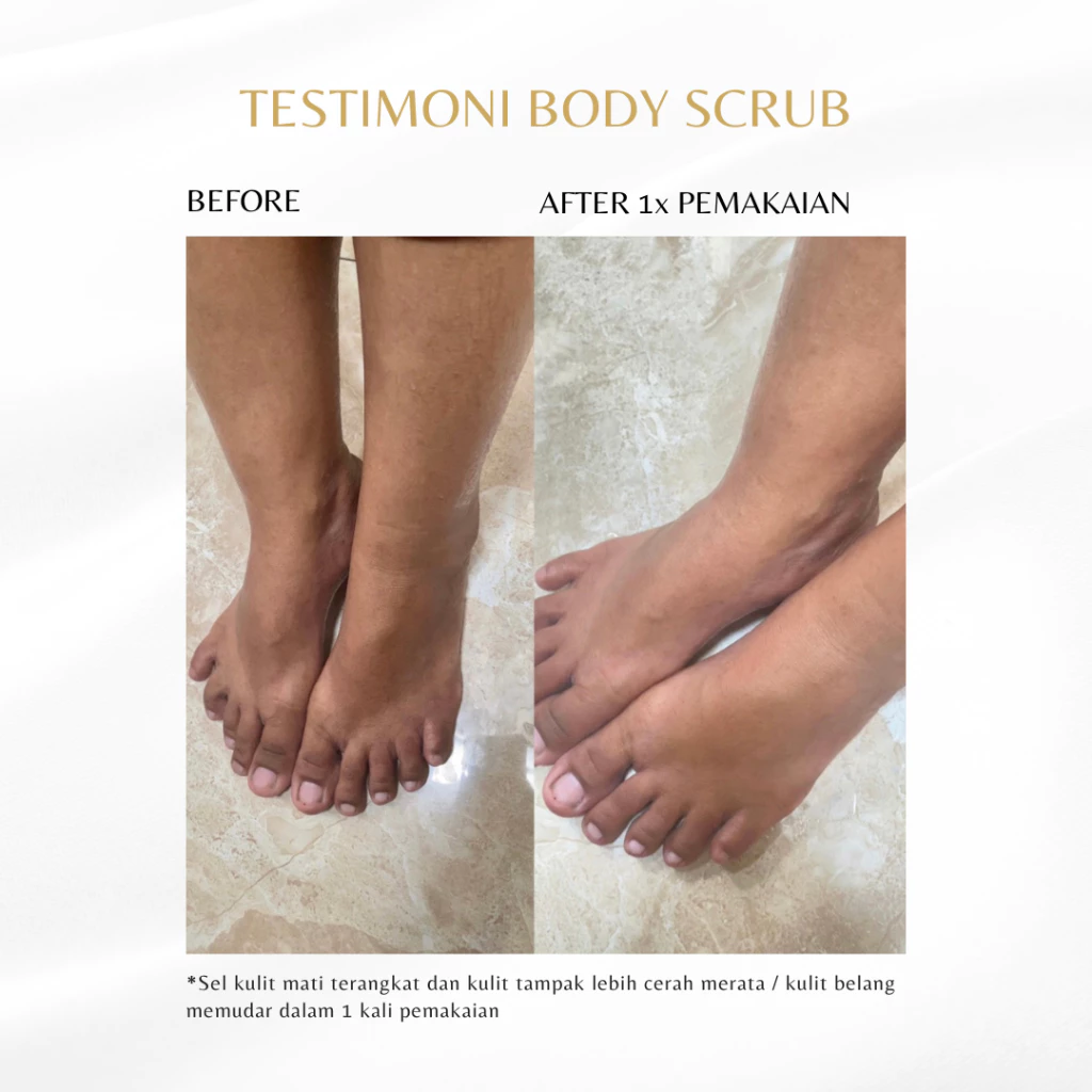 Lulur badan dengan butiran scrub halus dan lembut di kulit, kandungan Kaolin Clay untuk mengeksfoliasi sel kulit mati secara lembut tanpa iritasi.