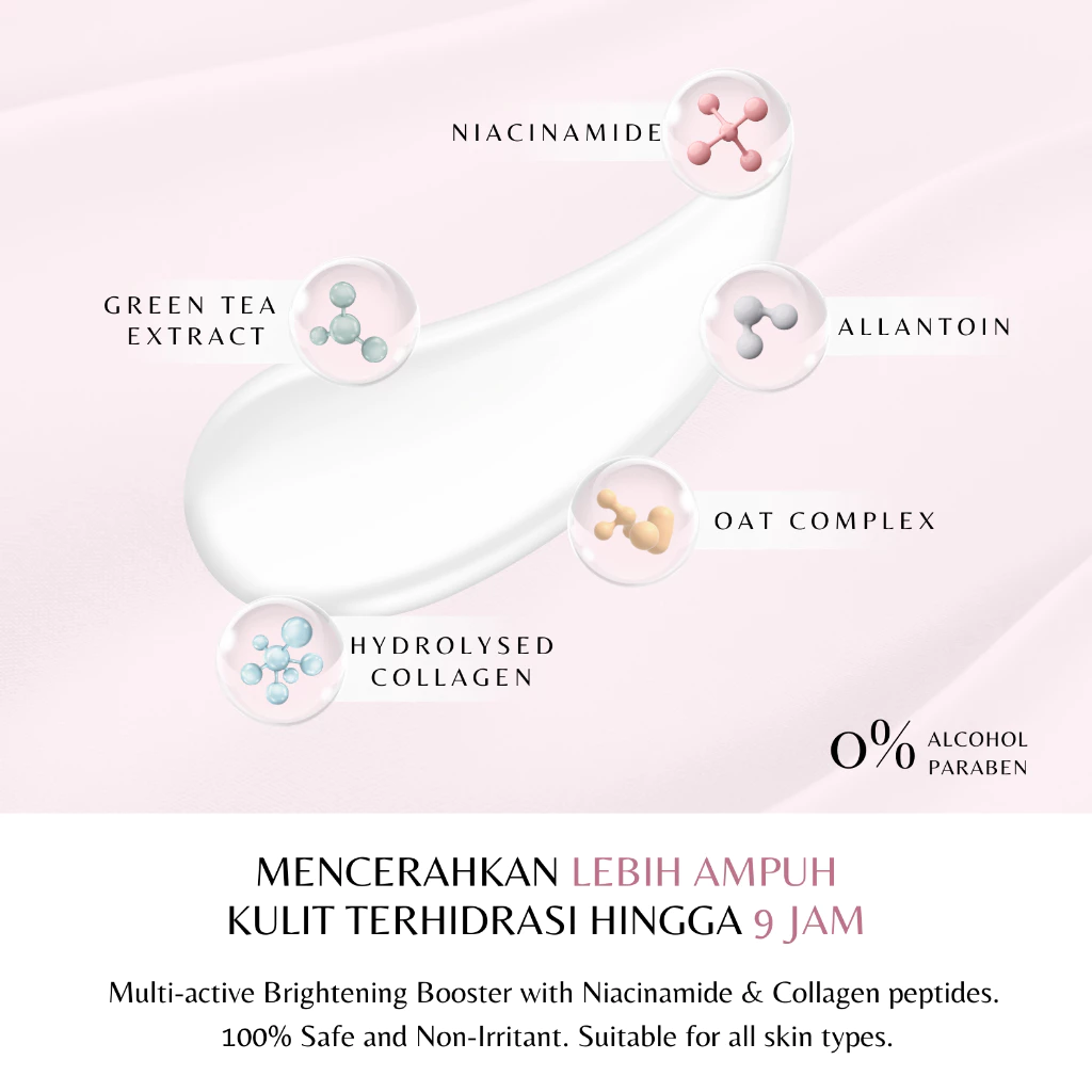– 1% Hydrolysed Collagen peptide: Menghidrasi dan melembabkan kulit secara maksimal