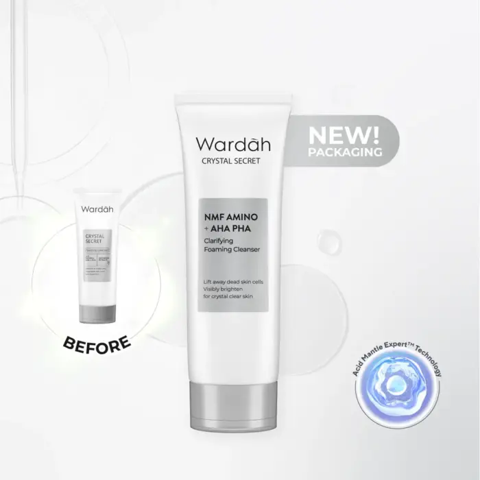 Memperkenalkan Wardah Crystal Secret Clarifying Foaming Cleanser , face wash dengan Acid Mantle ExpertTM Technology yang diformulasikan dengan NMF Amino, inovasi terbaru Amino dari Wardah yang dikombinasikan dengan NMF (Natural Moisturizing Factors) yang membantu menjaga pertahanan acid mantle sebagai garda terdepan skin barrier-mu. Kandungan NMF Amino dan AHA PHA membantu mengangkat sel kulit mati secara gentle untuk kulit tampak lebih cerah. Wardah Crystal Secret face wash cocok digunakan untuk semua tipe kulit.